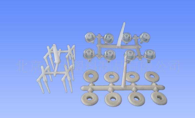 3、輔助零件:塑膠模具常用輔助零件有定位環、注口襯套、頂針、抓料銷、支撐柱、頂出板導柱導套、垃圾釘等等等,它們有一部分是標準件,可以直接在訂購模架時一起訂購,也有一部分需要自己設計。